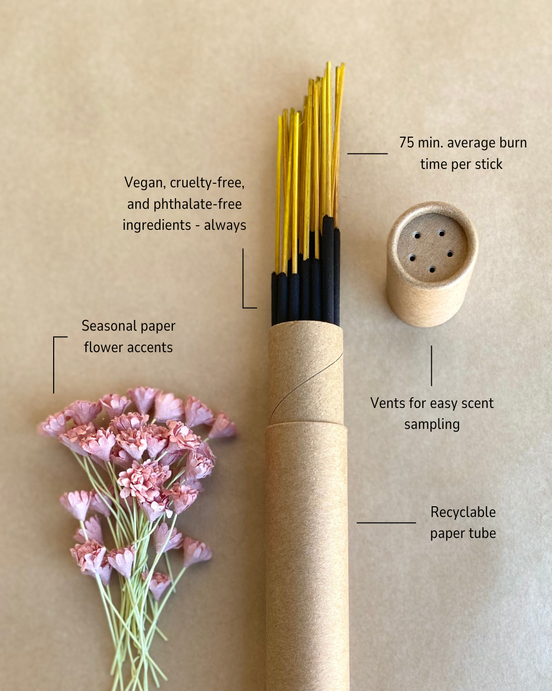 The best incense everWhen we burn this in the shop it makes me so happy. My employees would rather burn this incense over candles all day long. Clean, fresh smells and beautiful packaging. - Freshie & Zero Studio Shop